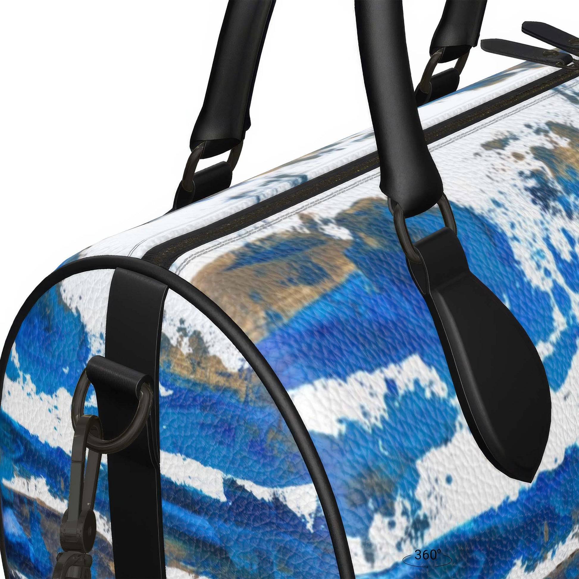 Use the customiser to make your Boston Handbag truly yours by choosing your preferred artwork from our range of art. The four main panels of the bag showcase the artwork, while smooth black Nappa leather is used for the handles, straps, trims, and zip details for contrast. Slight creases may appear naturally as the leather curves into shape, adding to the authenticity of a handcrafted piece.